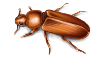 The Flour beetle will infest many types of food products, specifically dry starchy ones. Although it is named for its foraging of flour products, it may also rummage through and feed on beans, nuts, cereals, and rice. The Flour beetle will therefore commonly be found indoors and does large amounts of damage to stored food products.