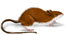 Complete with a short, thin tail, the deer mouse looks like an even smaller field mouse and is often misidentified as many other similar mice who all look much alike and share many of the same characteristics. This species however have a very distinct bi-colored tail, in which the upper section is a dark gray, the underneath pale pink, and is noted for its smaller size and ability to jump.